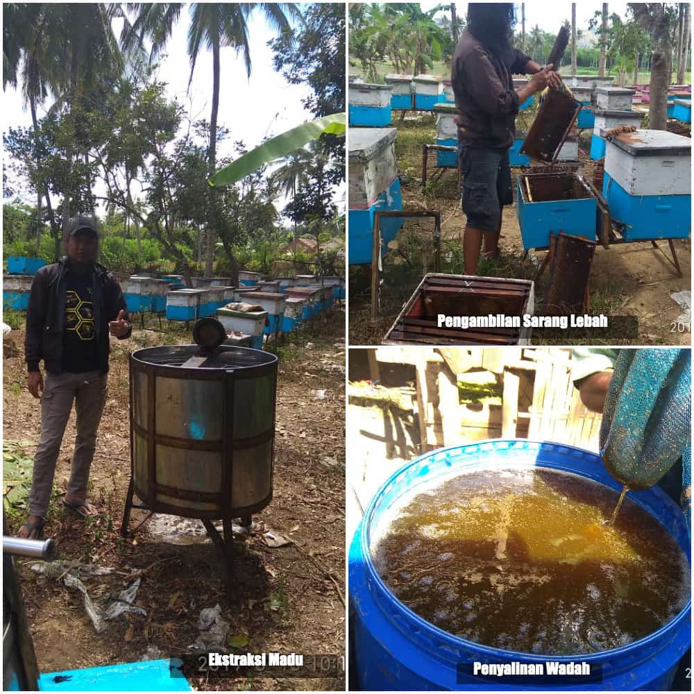Setelah sarang madu dibersihkan dari lebah, lubang madu yang masih tertutup lilin lebah dibuka dengan cara diiris agar madu mudah mengalir saat di-extract. Baru kemudian sarang madu dibawa ke alat extractor.Tahap terkahir adalah memindahkan madu hasil extraksi ke wadah dengan saringan agar madu yang dihasilkan benar-benar bersih.
